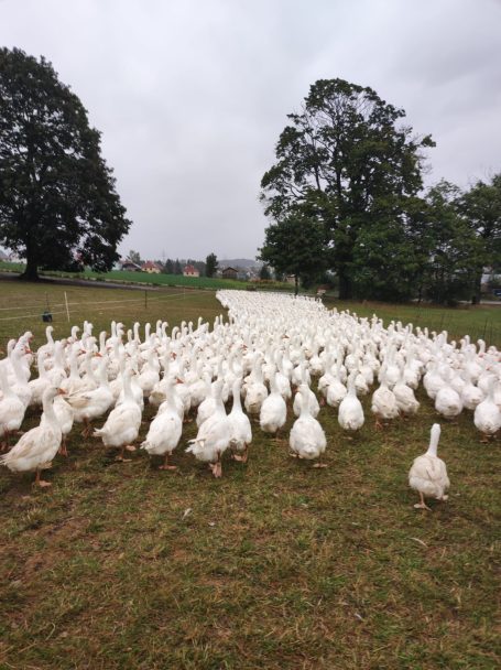 Im Jahr 2001 wurde das ehemalige Breitenauer Schweinekombinat umgebaut zu einer modernen Geflügelhaltung. In der Anfangszeit lag das Augenmerk auf der Produktion von Schlachttauben, die sich ziemlich aufwendig gestaltete. Die steigende Nachfrage von regional erzeugten Geflügelprodukten, lies uns in die Haltung von Großgeflügel investieren, was bis heute stetig ausgebaut wird. So hält die Agrozuchtfarm aktuell ca. 1200 Gänse, 800 Enten, Puten, Perlhühner und ab diesem Jahr Broiler für den Verkauf im Hofladen.
